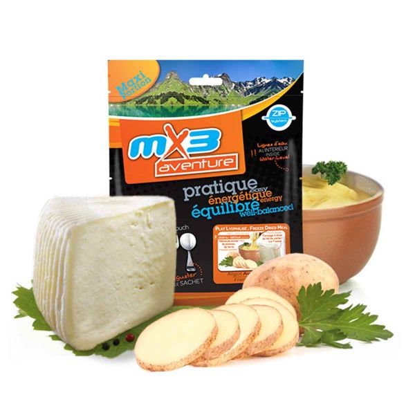 MX3 -kuivattu aveyronilainen aligot on tyypillinen vuoristoateria, joka yhdistää perunamuusin ja Aveyronin tuoreen tomme-juuston herkullisesti. Kaada kiehuvaa vettä suoraan pussiin, anna rehydroitua 10 minuuttia ja nauti!